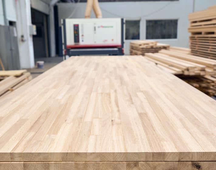Мебельный щит собирается из ламелей — сухих деревянных планок, которые склеивают в единое полотно. Такая конструкция снижает риск деформаций и помогает материалу лучше переносить перепады влажности.